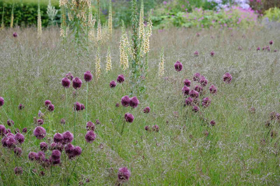 El Water Garden de Beth Chatto, por ejemplo, Molinia caerulea ‘Variegata’ se sitúa en la parte delantera de una bordura de herbáceas junto a plantas vivaces como Rudbeckia, Persicaria amplexicaulis y Eupatorium.