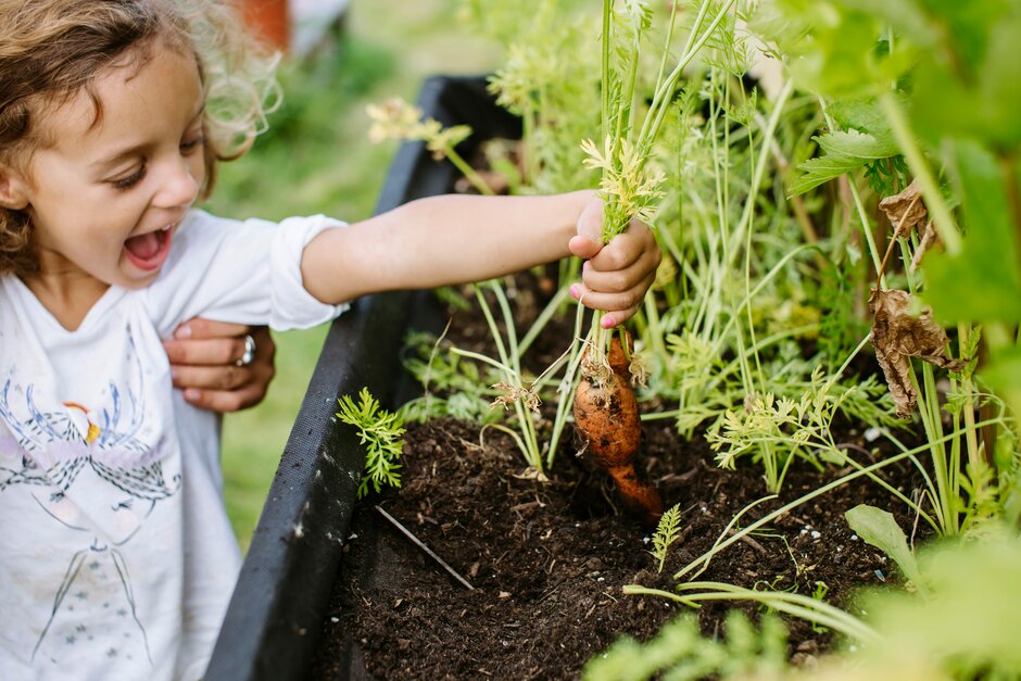 Lo cierto es que los niños son felices cuando salen a jugar al jardín, a trepar por los árboles o chapotear en los charcos. Pero, también, pueden serlo al sembrar y cultivar hortalizas, verduras y flores, aunque a veces sea a su manera. Si involucramos a nuestros hijos en el diseño, la plantación, el cuidado, la cosecha y el consumo de los alimentos que han cultivado, estaremos alimentando también su bienestar físico, espiritual e intelectual.