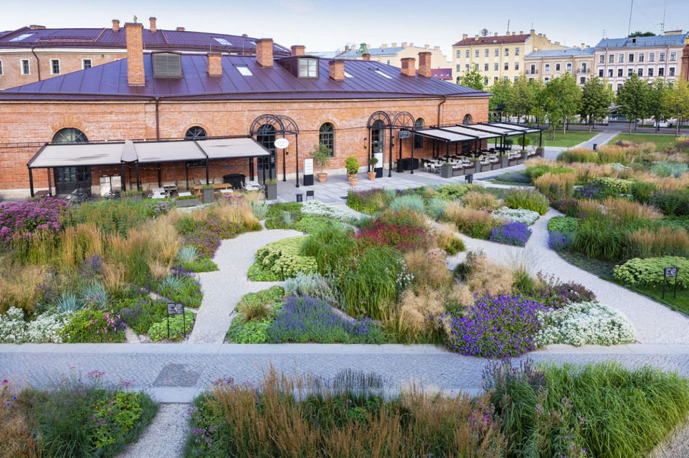 Una importante renovación urbana en el centro de San Petersburgo ha convertido la isla artificial de New Holland en el centro cultural y de ocio de esa ciudad, un gran espacio que aflora como la nueva cara de la cultura rusa contemporánea. En el corazón de la isla, y dentro de una plaza bordeada por edificios históricos, destaca la soberbia plantación de estilo naturalista diseñada por Mox Landscape Architecture, con abundantes gramíneas ornamentales, un “río de salvias” y otras vivaces plantadas en pequeños bloques para crear acento de color. Un jardín diseñado para ofrecer interés incluso después de la floración. Ver más en: Jardín público con plantación naturalista en New Holland, San Petersburgo