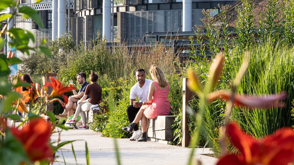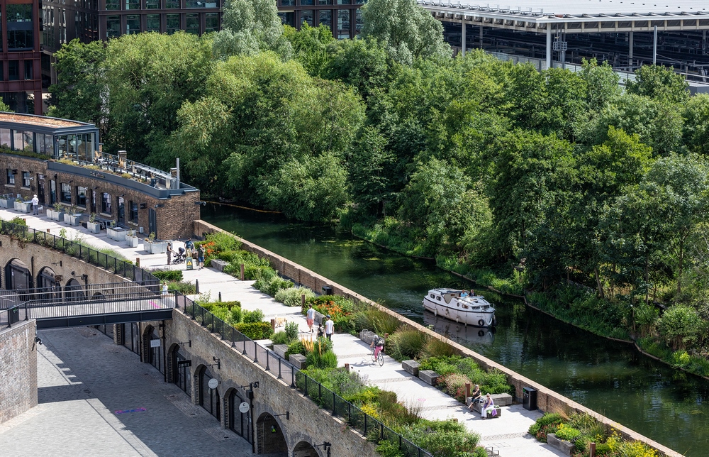 Bagley Walk es uno de los diversos espacios ajardinados incluidos en el importante proyecto de regeneración urbana ejecutado en los terrenos ferroviarios en desuso del barrio londinense de King’s Cross.