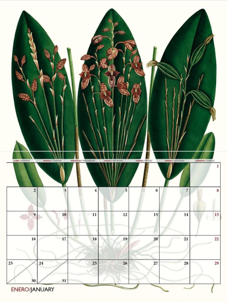 En esta ocasión, el calendario 2023 que edita el Real Jardín Botánico-CSIC de Madrid tiene como hilo conductor catorce dibujos de orquídeas de la serie que se recolectó y se dibujó durante la Real Expedición Botánica del Nuevo Reino de Granada, iniciada en 1783 en los territorios de la actual Colombia y Ecuador, bajo la dirección del botánico, geógrafo, matemático, médico y sacerdote José Celestino Mutis.