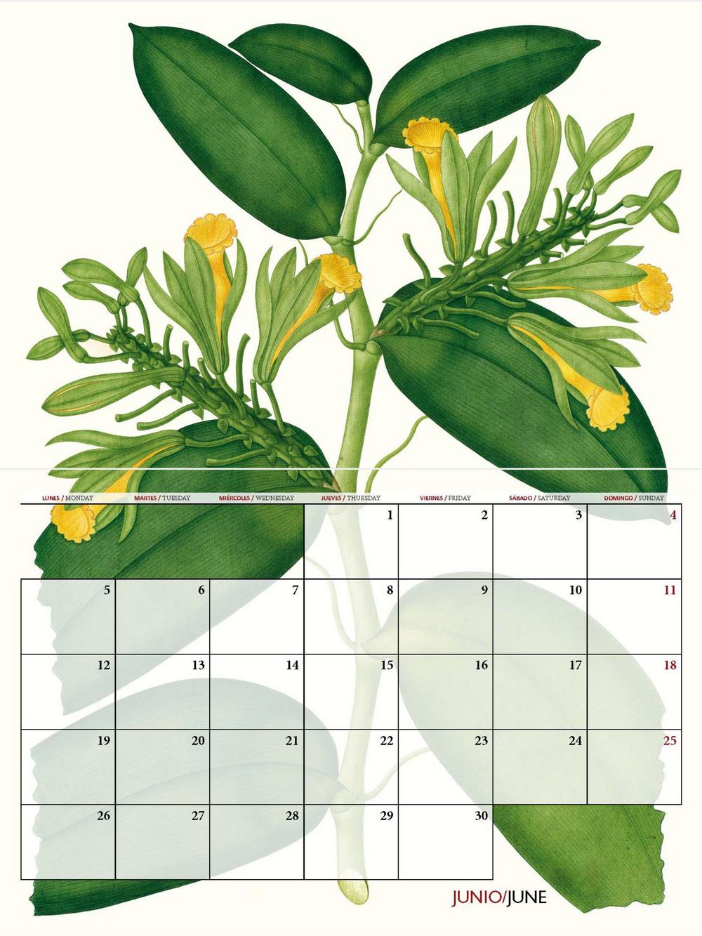 Los aztecas utilizaban una orquídea, Vanilla planifolia, representada en este calendario en el mes de junio, para aromatizar una bebida espesa hecha a base de cacao, destinada a los nobles y a los guerreros, conocida con el nombre de xocoatl. Actualmente este fruto es utilizado ampliamente en la industria alimentaria.