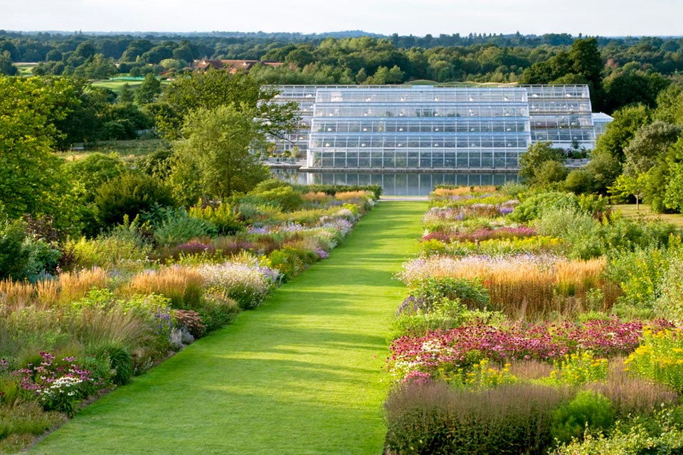 Las actuales borduras de en los jardines de Wisley fueron diseñadas por Oudolf cuando aún no estaba construido el icónico invernadero de cristal. Por aquel entonces, le pidieron que diseñara esas largas borduras, creando un carril lineal enfocando hacia la Glasshouse. Para el diseñador, esto supone que el visitante no mira a su alrededor, sino hacia dónde se dirige.