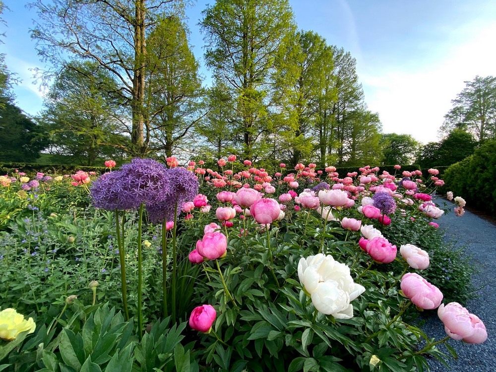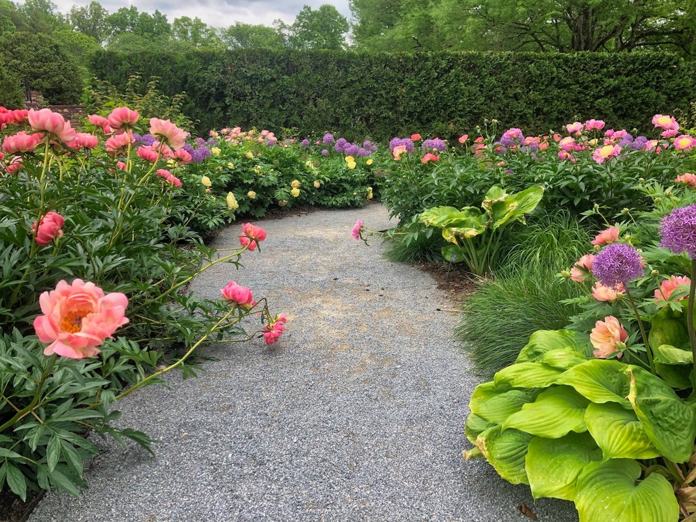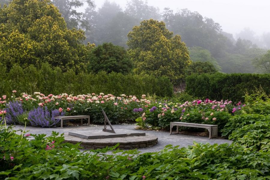Dicen que el Peony Garden, el jardín de peonías de Longwood Gardens, es una especie de jardín secreto o, dicho con más propiedad, una habitación o espacio ajardinado que se esconde cerca del Flower Garden Walk. Como es lógico, debe su nombre a las peonías que florecen desde mediados de mayo hasta principios de junio, pero, además de peonías, allí crecen y florecen otras variedades de plantas herbáceas y arbustos a largo de las estaciones.