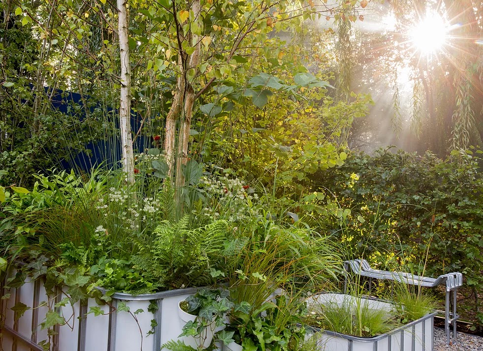 Entre los jardines presentados en esas nuevas categorías de Chelsea, hoy quería detenerme en The IBC Pocket Forest, el jardín en contenedores diseñado por Sara Edwards (No 30 Design Studio) y presentado dentro del apartado Container Gardens, con el propósito de ofrecer un refugio para la vida silvestre y un santuario en el que sentarse y sumergirse en la naturaleza incluso en espacios urbanos.