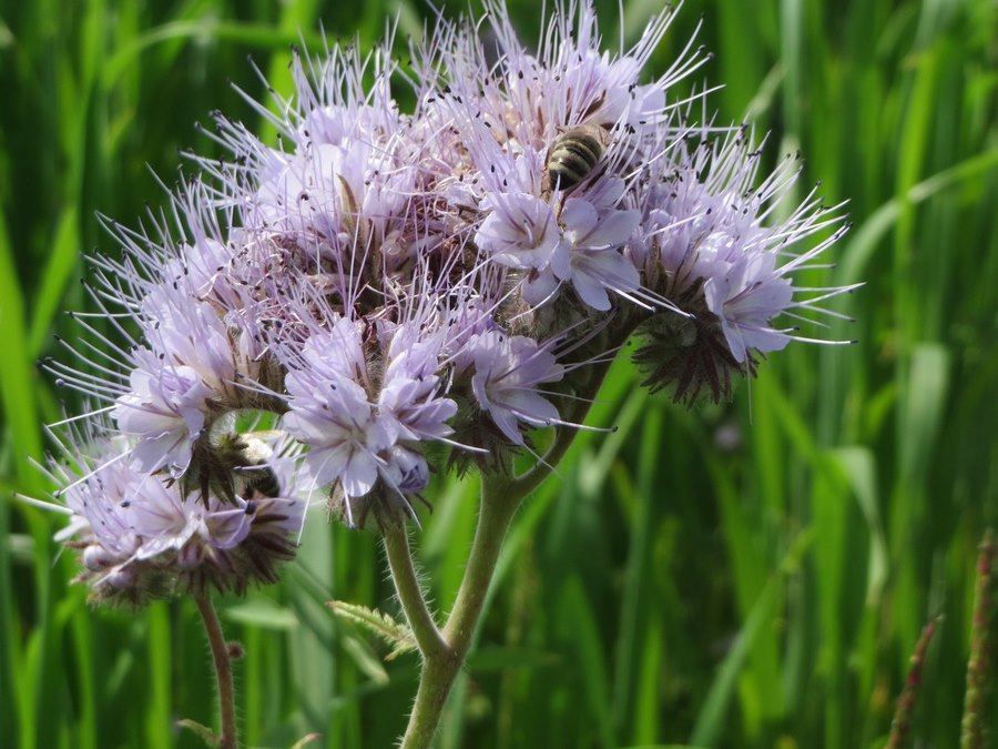 La floración de Phacelia tanacetifolia no solo es atractiva, abundante y persistente. De ella hay que destacar que sus flores son, además, una de las 20 principales flores productoras de miel para las abejas.