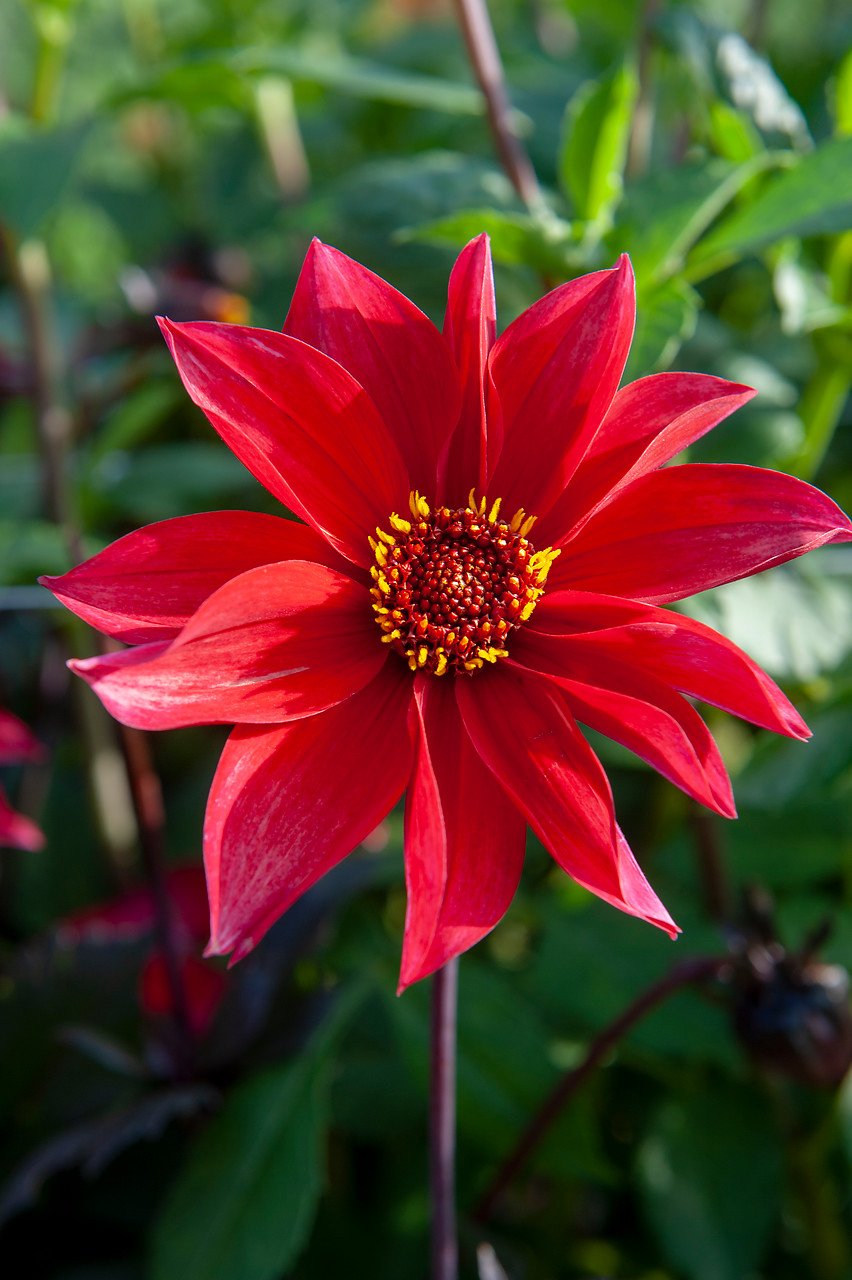 Entre todo ese universo de dalias, hoy quería fijarme en el color. Concretamente en el rojo, en ese rojo que en ocasiones se escapa hacia negro e incluso lo alcanza en algunas flores de dalias.