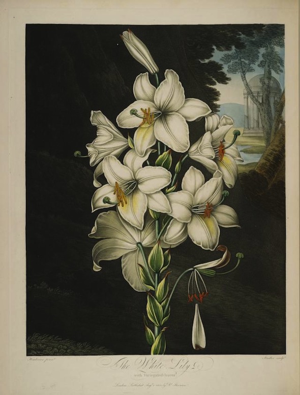 Una obra que no se puede separar de la historia de la botánica, la exploración de continentes desconocidos en el siglo XVIII y la resultante fascinación por las especies de plantas exóticas recién descubiertas traídas a Europa. The Temple of Flora de Robert John Thornton está considerado como el más famoso de todos los florilegios.