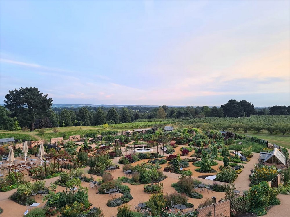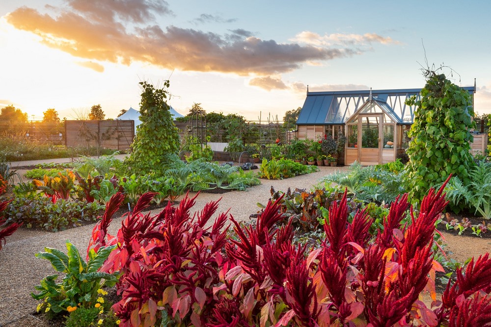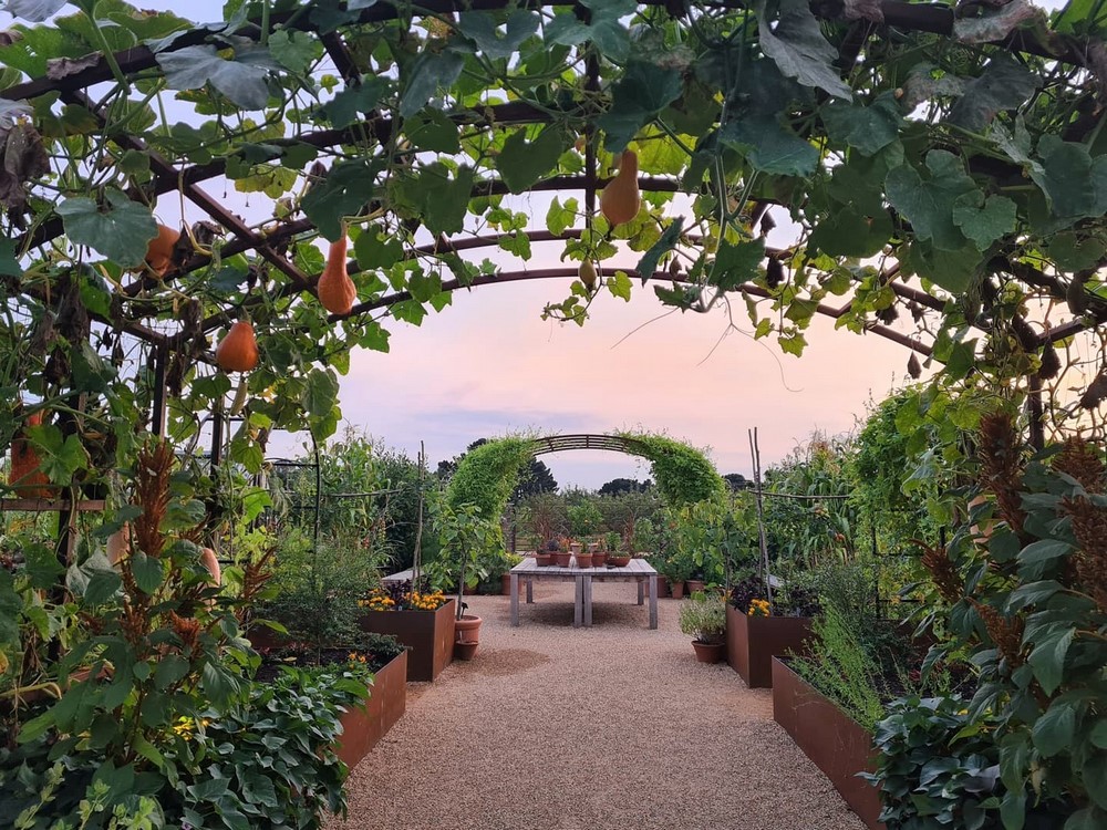 El espacio, que ocupa 3.738 metros cuadrados y se conecta perfectamente con el Wildlife Garden, es una caja con delicias comestibles dividida en tres secciones y cultivadas sin excavación, unidas por un amplio eje central de pérgolas arqueadas adornadas con trepadoras comestibles que incluyen calabazas de colores brillantes y exóticas flores de la pasión.