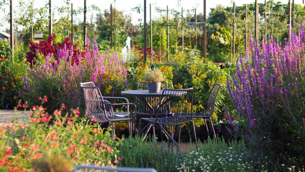 En el área central se encuentra ‘Good to Grow’, la sección donde se representa, con un giro contemporáneo, la huerta tradicional, con un llamativo anillo central de árboles frutales en espaldera que se disponen alrededor de un estanque circular. Esa área está llena de verduras que se encuentran en los huertos del Reino Unido, cultivos que se seleccionan de algunas de las variedades AGM (Award Garden Merit) de mejor rendimiento para aumentar sus posibilidades de éxito, pero, en lugar de sembrarse en tiras tradicionales, se cultivan en todo tipo de formas para inspirar a los visitantes del jardín y mostrarles lo que también pueden conseguir en sus casas.
