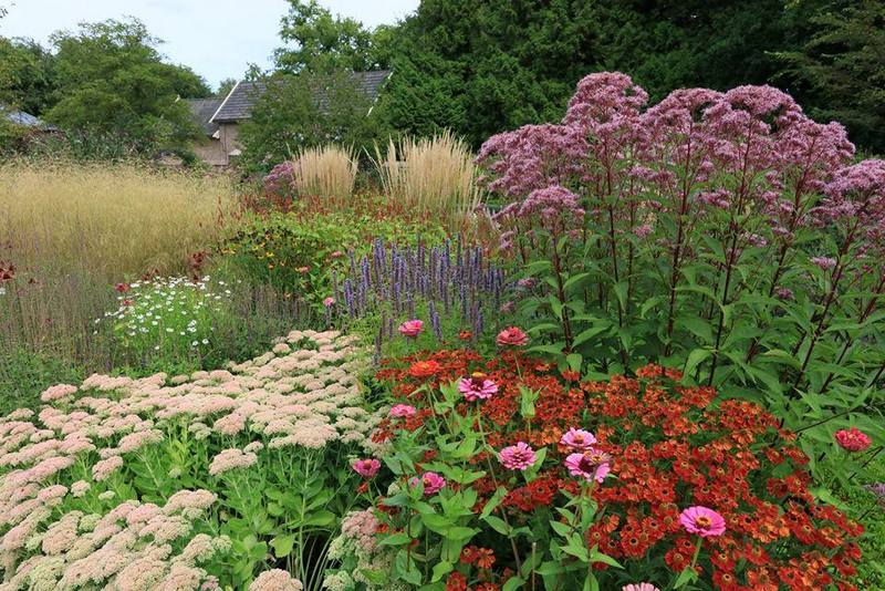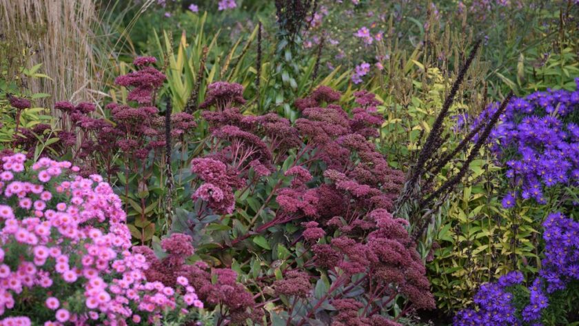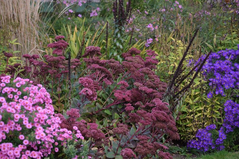 Aster, Solidago, Helenium, Rudbeckia, Veronicastrum, Molinia, Stipa gigantea o Sesleria autumnalis, entre otras gramíneas ornamentales y vivaces, son excelentes compañeras de los cultivares de Hylotelephium que he mostrado.