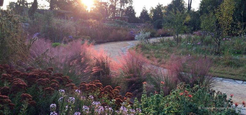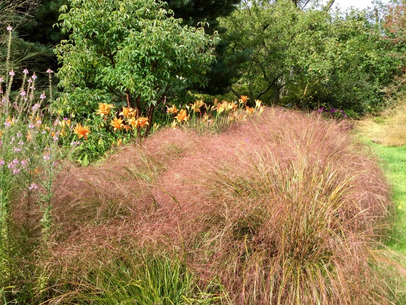 No es una gramínea alta, alcanza un máximo de 90 cm, pero es muy vistosa. A finales del verano, se cubre con cabezas de flores de tonos rosados que crean un efecto de nube realmente atractivo para el jardín.