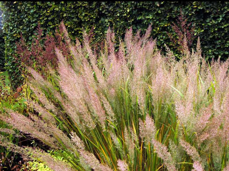 Las resplandecientes inflorescencias de esta gramínea ornamental se presentan a la altura de los ojos y su follaje añade a la paleta otoñal un tono rojizo realmente atractivo.