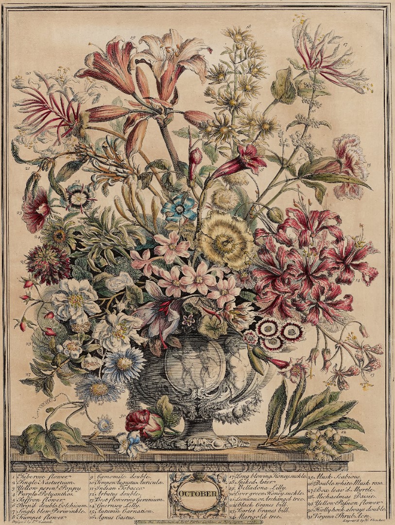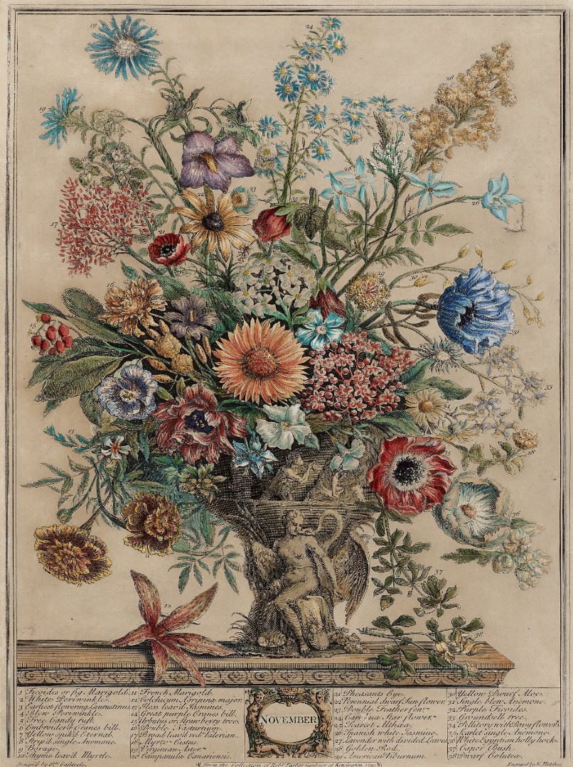 Twelve months of flowers,1730 • Catálago de plantas de Robert Furber • Detalle de noviembre