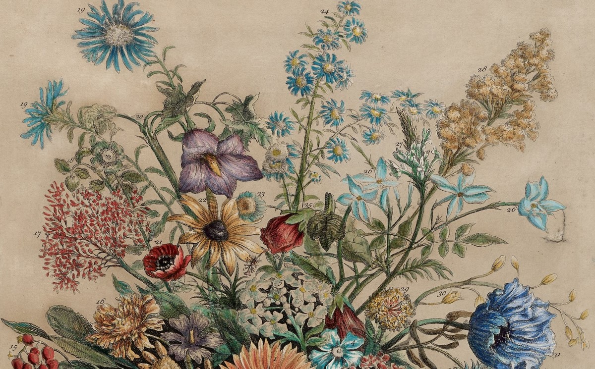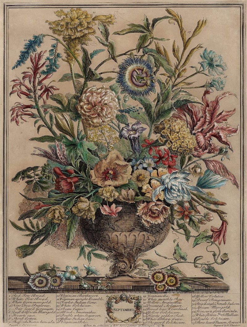 Twelve months of flowers, 1730 • Catálago de plantas de Robert Furber • Detalle de septiembre