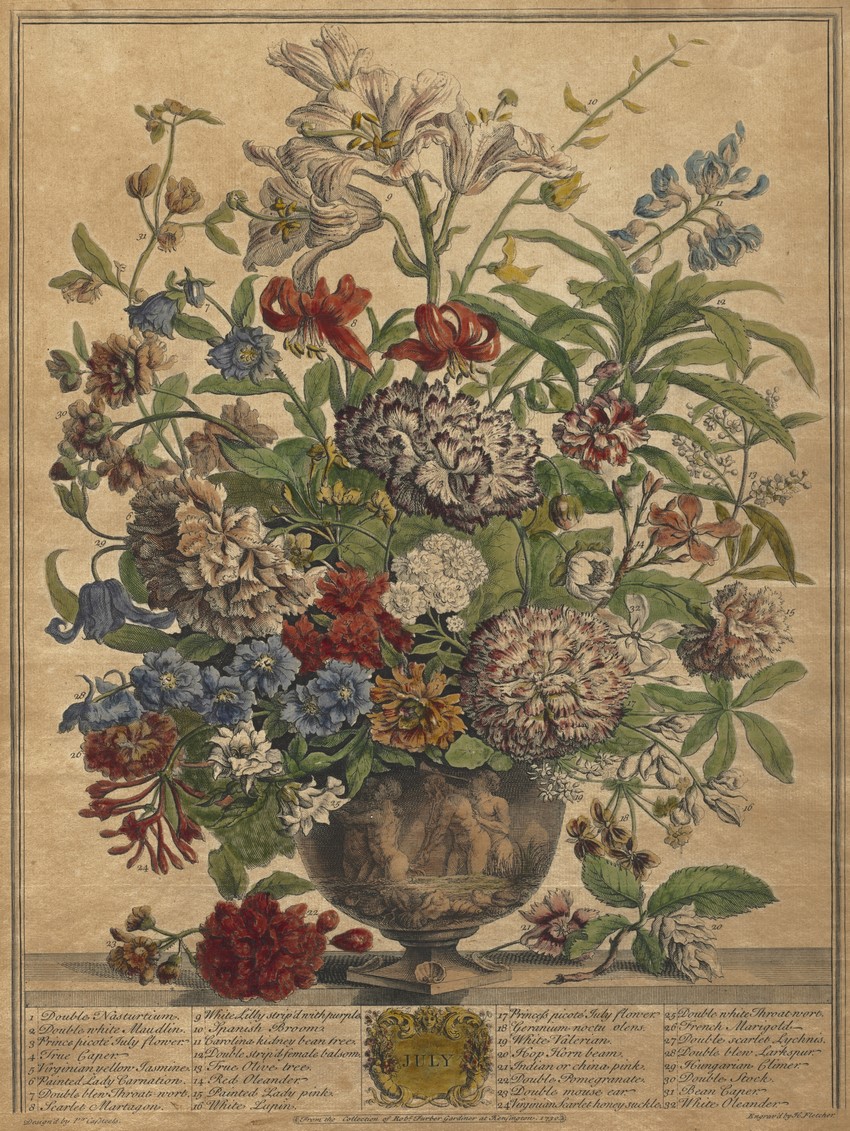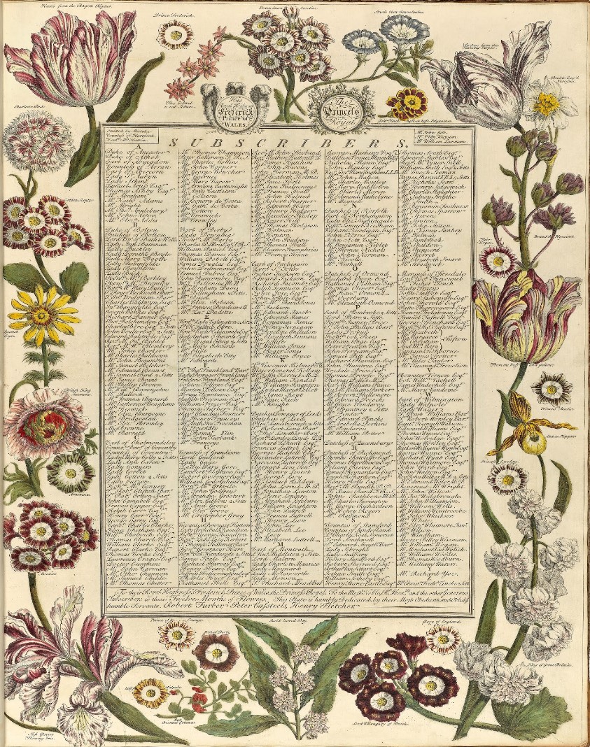 Twelve months of flowers, 1730 • Catálago de plantas de Robert Furber • Lista de suscriptores