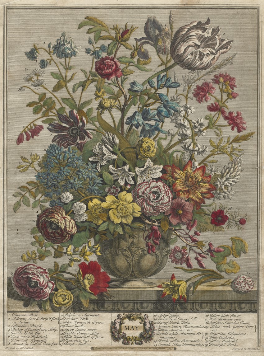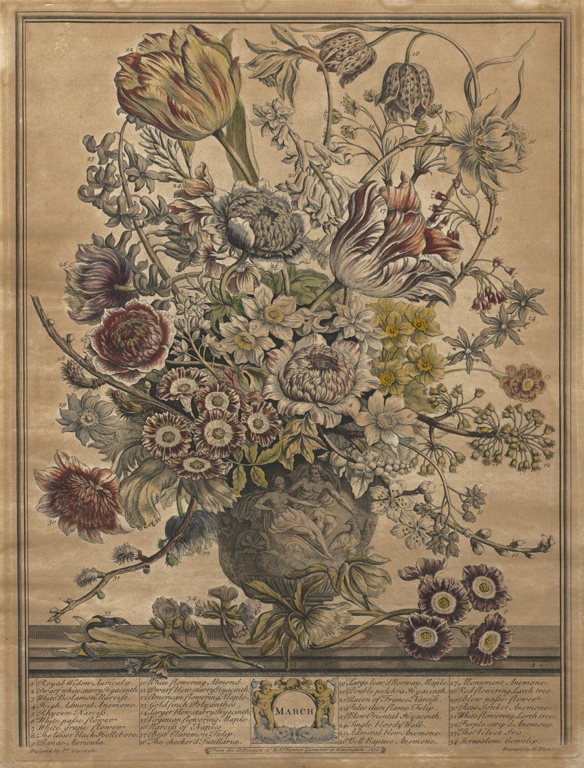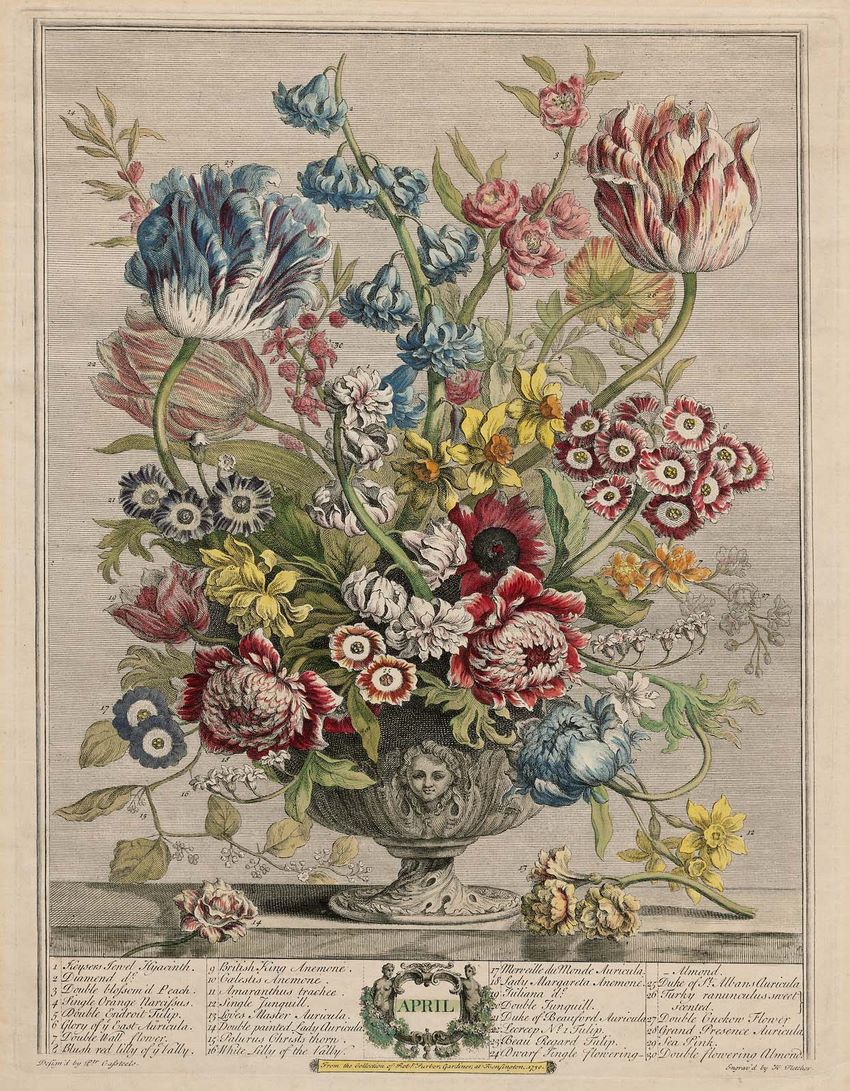 Twelve months of flowers, 1730 • Catálago de plantas de Robert Furber • Detalle de abril