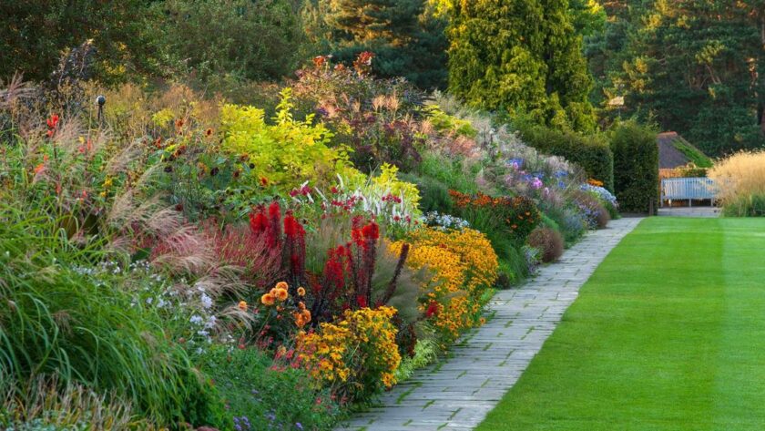 Follaje y floración, altura, textura, movimiento y color son algunas de las cualidades de las plantas con las que se puede jugar en el diseño de plantación de este tipo de borduras. Los ejemplos que muestro se encuentran en jardines de Inglaterra y en casi todos los casos celebran la floración del verano o comienzos del otoño, cuando un buen número de plantas vivaces y gramíneas ornamentales presentan su mejor cara.