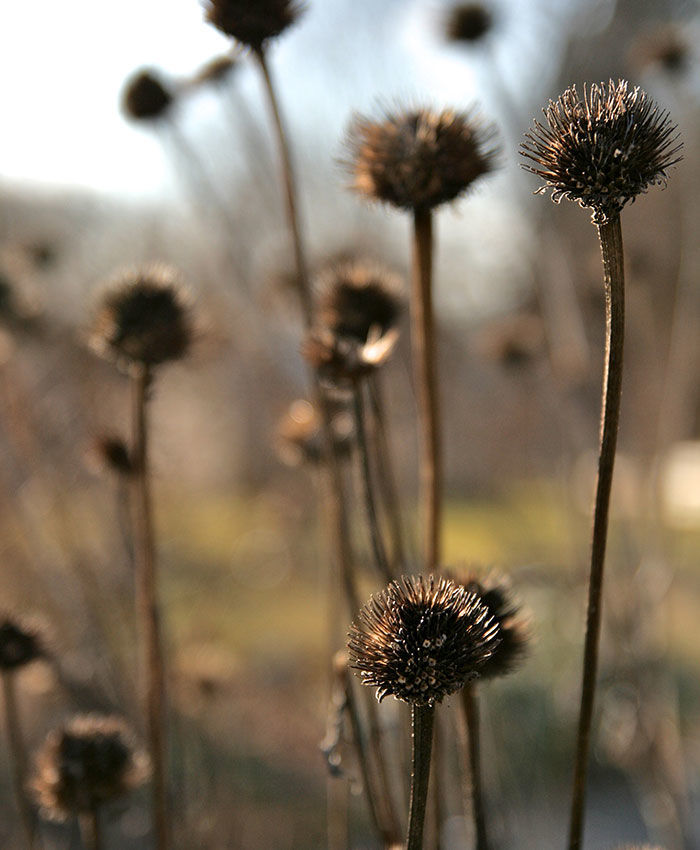 Una vez que las equináceas pierden sus flores externas (lígulas), las cabezas de semillas en forma de cono siguen ofreciendo atractivo y los tallos florales altura. Las vistosas inflorescencias estivales que tanto adoran las abejas, se convierten en invierno en una fuente de alimento para las aves. Más sobre el género Echinacea.
