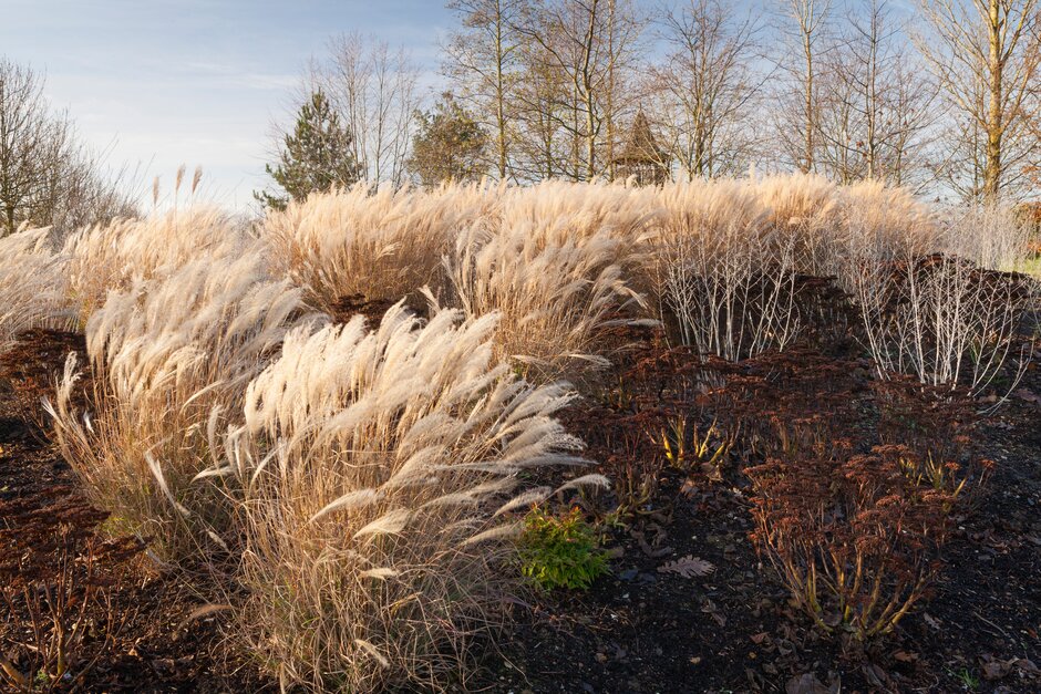 | Miscanthus sinensis e Hylothelephium en el jardín de invierno de RHS Garden Hyde Hall | Foto © RHS / Lee Beel |