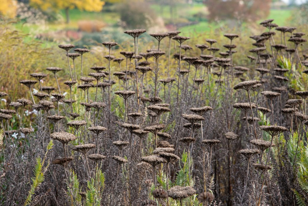 Si se plantan en masa en las borduras de herbáceas, sus cabezas florales planas introducen un interesante efecto horizontal que se mantiene y destaca también en otoño, cuando surgen las semillas. Más sobre el género Achillea.