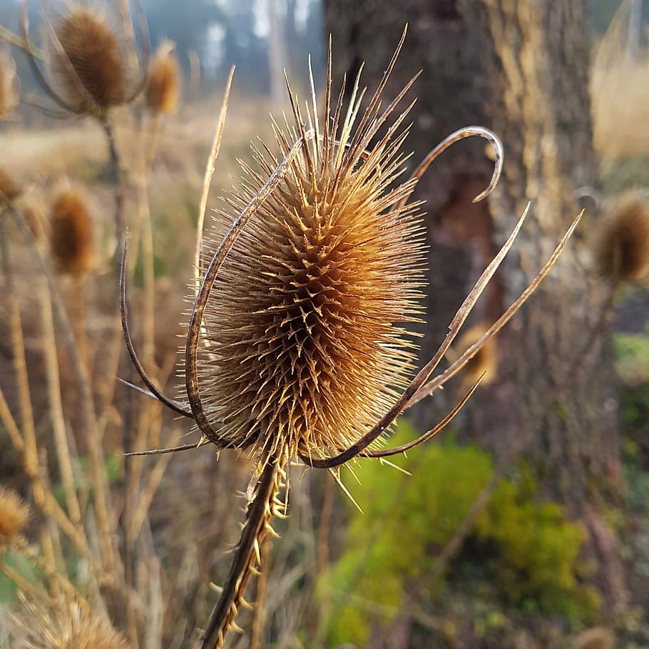 Está claro que los cardos son los reyes en esta fiesta de otoño e invierno y a ella no podían faltar las plantas del género Dipsacus, ofreciendo interés cuando sus cabezas de semillas se elevan sobre rosetas de hojas espinosas. No solo son apreciados en el jardín, sino también en floristería, ya que adquiere tonos dorados al secarse que resultan muy efectivos en los arreglos florales.