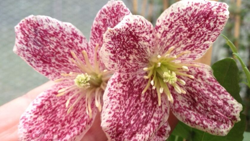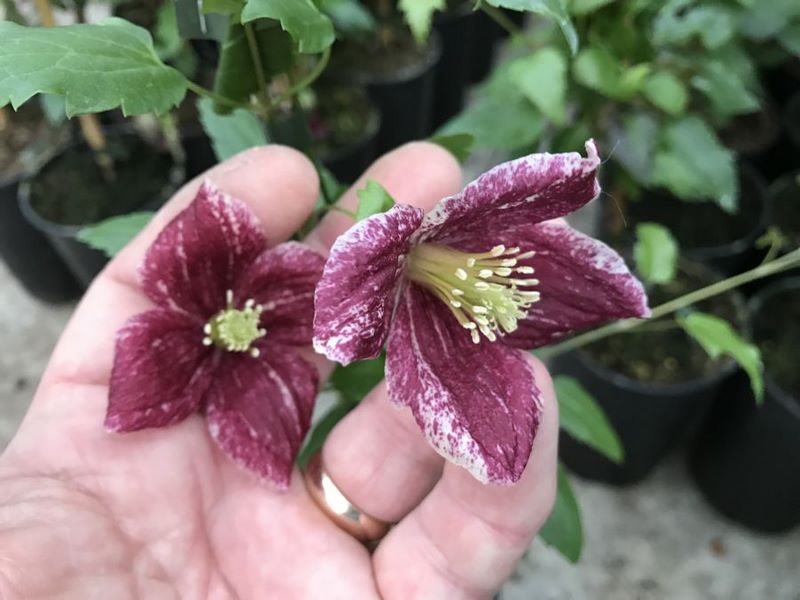 ► Clematis cirrhosa var. purpurascens ‘Freckles’