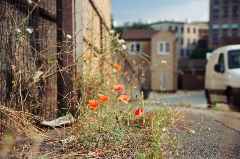 Vamos a encontrar imágenes de coloridos parterres temporales en la ciudad de Bristol, que contrastan con el gris de un fondo urbano un tanto desolador. También un espectacular Salix Pekinensis y la reflexión de la luz de la tarde que convierte en oro el fondo, esta vez en la capital china, Beijing. En Londres las flores blancas del árbol, de nuevo hacen un guiño a la belleza frente al sobrio entorno. Las “malas hierbas” se hacen buenas y las flores asoman para el consuelo de quienes circulan a poca velocidad pero con mucho stress. Incluso, si caminas cabizbajo por alguna calle de Sheffield puedes encontrar amapolas.