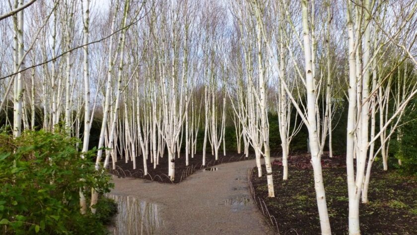 A esto le sigue el encanto especial que ofrecen las especies de tallo blanco en invierno, cuyas cortezas blancas brillan cuando los árboles están desprovistos de su follaje.