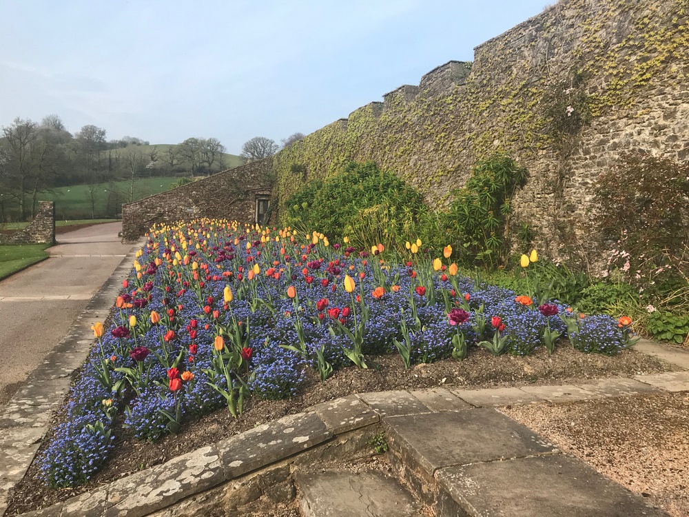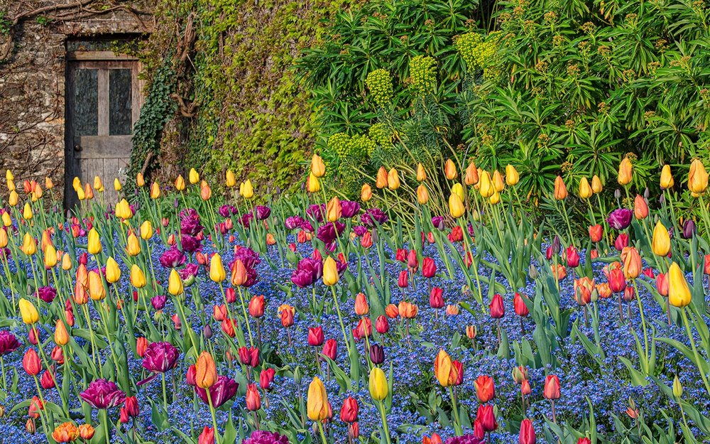 Sin embargo, en otros lugares, como los parterres del Upper Walled Garden, el Sunken Garden y debajo del rosal, los bulbos de tulipán permanecen en el suelo. Esto es debido a que las plantas herbáceas perennes crecen rápidamente en estas áreas y pronto comienzan a florecer, por lo que pisar los lechos para desenterrar los bulbos podría causar demasiado daño a las plantas emergentes. No obstante, y aunque algunos volverán a florecer la siguiente primavera, suelen rellenar con nuevos bulbos en otoño para asegurar una exhibición vibrante.