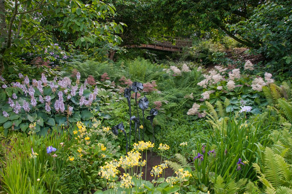 A mediados y finales de la primavera brilla la colección de iris, la colección de castaño de indias y grandes cantidades de Camassia y Allium en sucesión. A mediados del verano, son las rosas, así como las plantas vivaces y anuales, las que ocupan espacio en muchos de esos jardines.