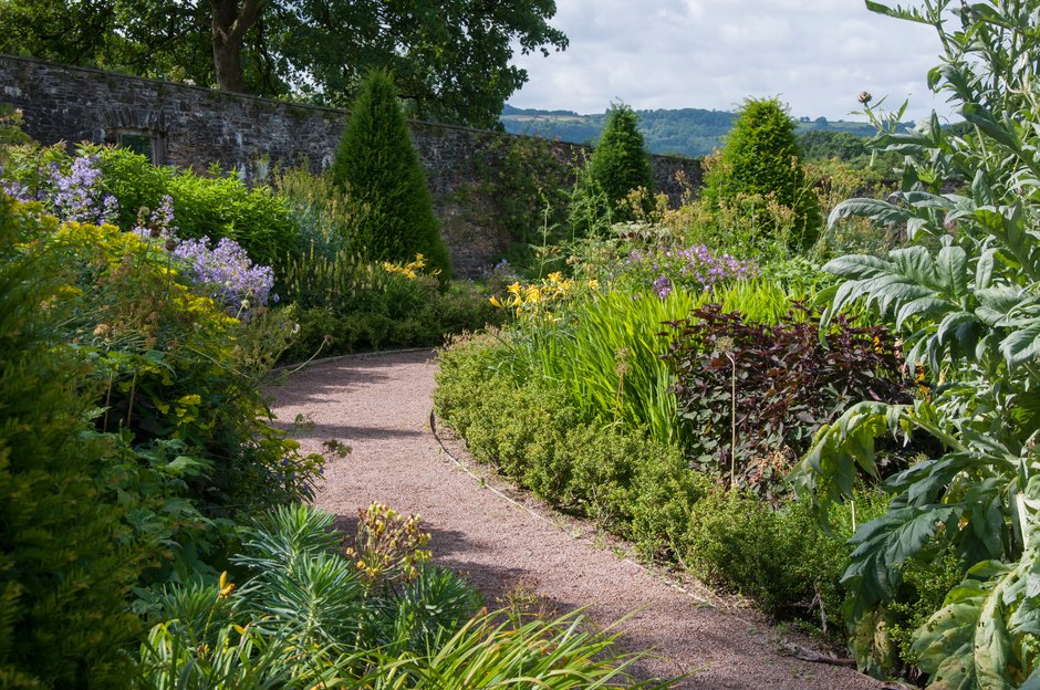 Existen tres jardines amurallados. Uno de ellos, el superior que hay junto al claustro (Upper Walled Garden), fue diseñado por Penelope Hobhouse.