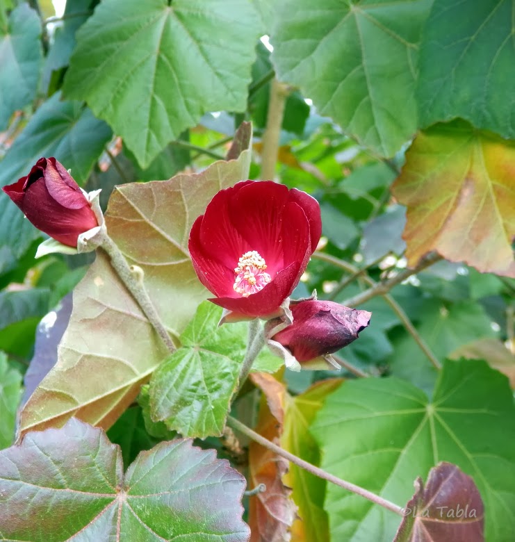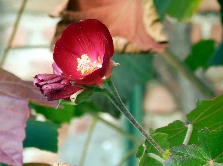 Una linterna roja china que no puede pasar desapercibida. Abutilon hybridum ‘Nabob’, híbrido de dos especies brasileñas de abutilon: Abutilon darwinii y Abutilon estriado.