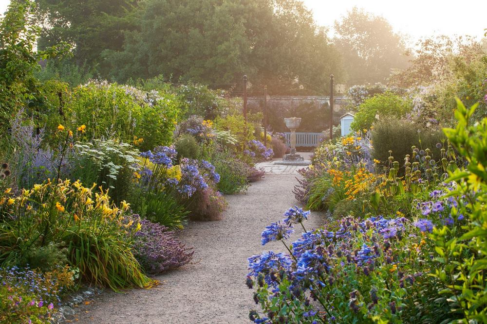 Agapanthus en bordura de herbaceas de Lamport Hall, Northamptonshire (Reino Unido) • Clive Nichols