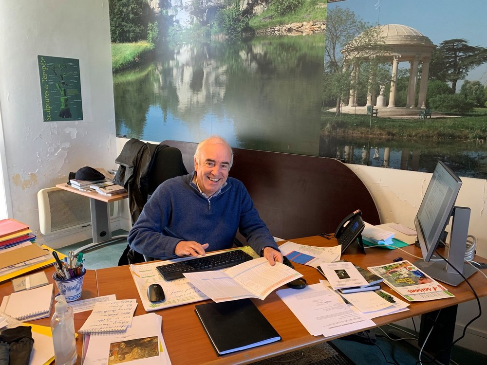 Alain Baraton en su oficina, ubicada entre el Gran Trianón y el Pequeño Trianón de Versalles. Marzo 2020