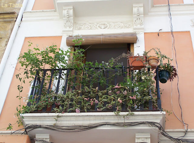 Yo estaba feliz, paseando y fotografiando los vergeles que tenían algunos residentes de ese popular barrio de Valencia en minúsculos balcones y terrazas. Al enfocar hacia uno con numerosas plantas crasas, me sorprendieron las vecinas del piso de arriba gritando: ¡no se puede! Yo respingué del susto y sorprendida pregunté ¿no se puede fotografiar? ( hasta para eso hay que pagar derechos, pensaba yo). Una de ellas, la que controlaba el cotarro, contestó: “no, digo que no se puede tener plantas en el balcón” Y a mí por dentro me hundió en la miseria, porque pensé, adiós post, no voy a hablar de algo que está prohibido…