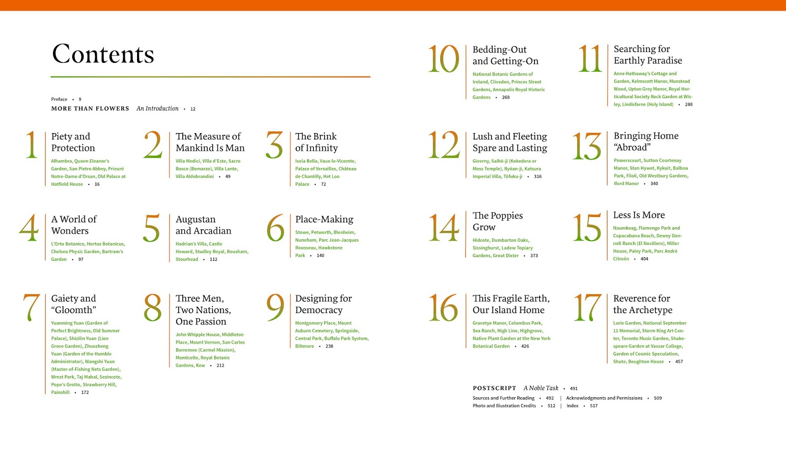 Lo cierto es que ese recorrido de jardín en jardín, a través de siglos y continentes, se ha hecho teniendo en cuenta especialmente aquellos jardines cuyos estilos han tenido una notoria influencia en el Reino Unido y en Estados Unidos. Una larga lista de jardines sobradamente conocidos, otros no tan conocidos y alguna que otra sorpresa.