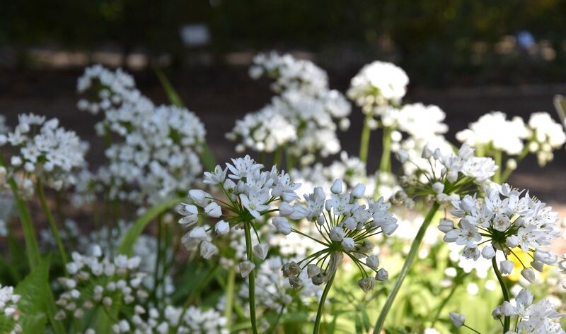 No hay problema, ninguno, claro que no. Menudo aroma el de sus hojas (si te gusta el aroma a ajo fresco en el jardín) y qué belleza la del Allium neapolitanum (Ajo blanco, lágrimas de la Magdalena o lágrimas de la Virgen, entre otros nombres comunes), con numerosas flores de un blanco resplandeciente reunidas en umbela semiesférica (a veces incluso esférica), sobre tallos de 20 a 30 cm, que suelen aparecer a finales de febrero y continúan hasta junio.