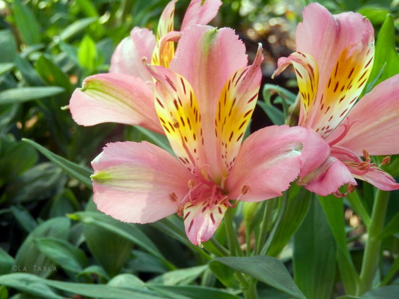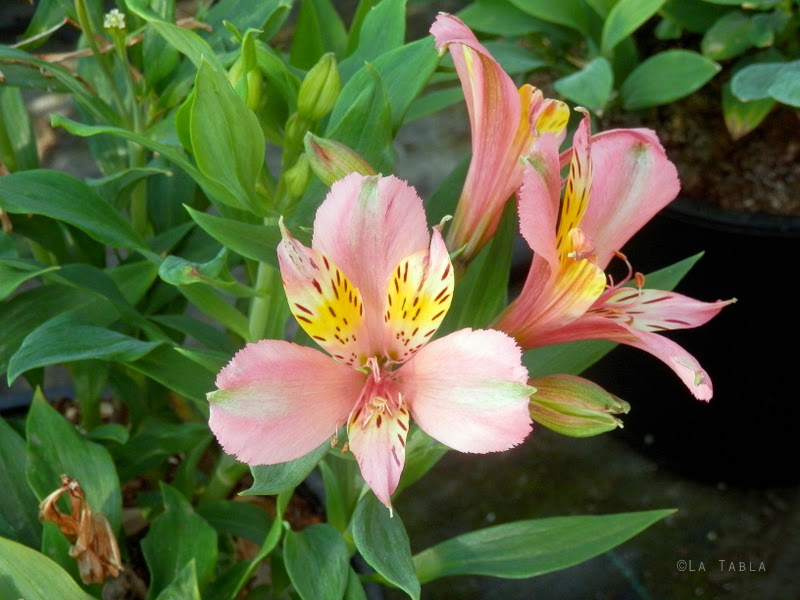 Volvemos con las alstroemerias. ¿Por qué? Porque de ellas siempre hay algo interesante que decir o mostrar. Y de esa combinación al azar que salió hoy, el color que ha funcionado mejor ante la cámara es el de la Alstroemeria hybrida que os muestro y que corresponde a la serie Inca Avanti. Tiene un hábito de crecimiento compacto, pero sus tallos florales se desarrollan de forma que permiten que se sea también una buena opción para flor cortada. Perfecta para jardín, pero suele crecer bien en grandes macetones. Sea del modo que sea, podremos disfrutar de las flores de color melocotón y brillantes que aparecen en verano y otoño.