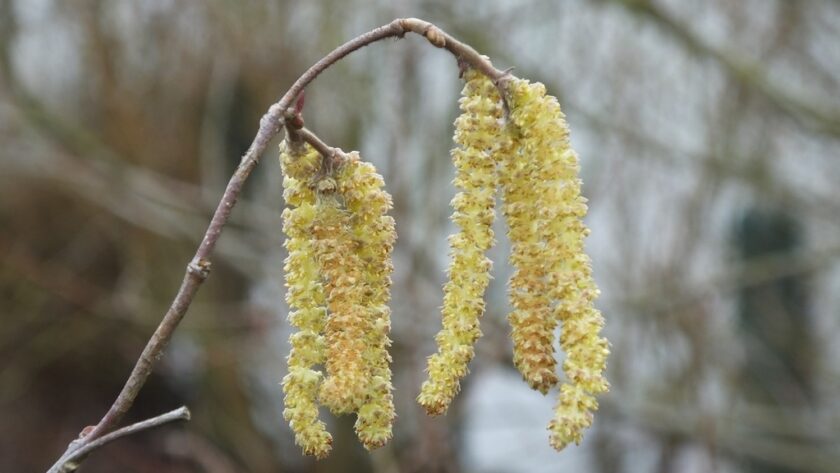 Podemos descubrir estas flores especiales en invierno y en primavera. Es cada vez más apreciado el valor ornamental de las flores sin pétalos que lucen algunos árboles antes de las hojas. Me refiero a los amentos, como los de los avellanos, en forma de cuerda de diminutas flores masculinas, que producen polen que bombean en grandes nubes doradas, con la esperanza de que el viento ayude a que algo caiga sobre alguna flor femenina.