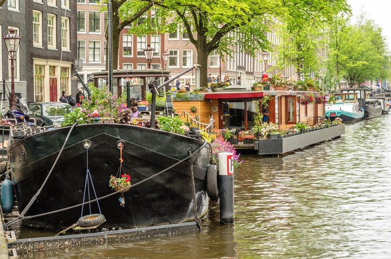 Ámsterdam es conocida como la «Venecia del norte» por sus más de 100 kilómetros de canales, unos 1.500 puentes que los cruzan y alrededor de 90 islas. No es de extrañar que algunos de los atractivos de esta ciudad estén sobre el agua, como sus pintorescas casas flotantes con jardines adosados y el mercado de flores flotante, llamado Bloemenmark.