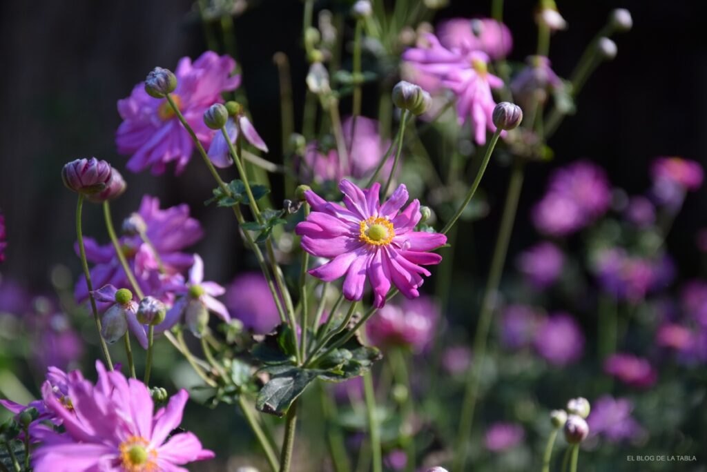 Las anémonas japonesas o anémonas de otoño son, dentro del género, las más altas y su floración es más duradera. Hablando de género, he descubierto recientemente que las especies que integran este grupo de anémonas han pasado a formar parte del género Eriocapitella, y, por lo tanto, Anemone es ahora el sinónimo.