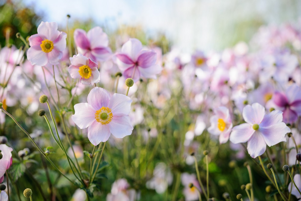 Especialmente apreciadas por agregar interés en el jardín hasta bien entrado el otoño, las anémonas japonesas o anémonas de otoño producen flores rosadas o blancas en forma de platillo sobre tallos altos, delgados y ramificados. Son diferentes especies y variedades de plantas vivaces robustas que, una vez establecidas, resultan fáciles de cultivar, prosperando al sol o en sombra parcial. Una alegría para la vista cuando el jardín comienza a presentar su aspecto otoñal.