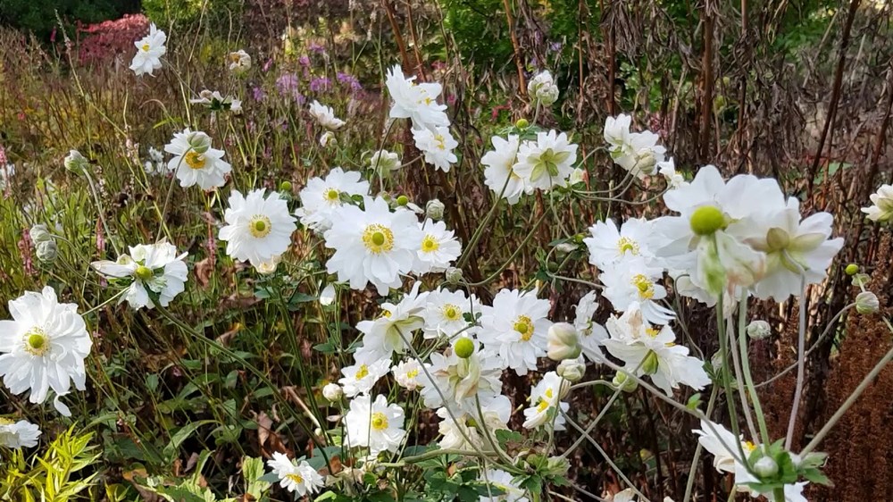 Anemone x hybrida ‘Honorine Jobert’ en el Oudolf Field, la pradera naturalista diseñada por Piet Oudolf en Hausser & Wirth Somerset | © Nigel Dutt