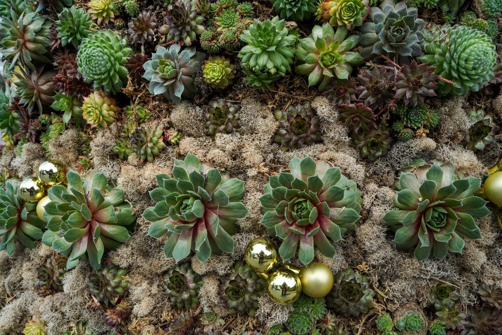 Este año, los visitantes que acceden a Longwood Gardens por la entrada este del Conservatorio, se ven sorprendidos por un impresionante árbol de Navidad de 2,5 metros de alto, envuelto en 1.800 plantas suculentas de diferentes variedades hortícolas de siemprevivas (Serpervivum).