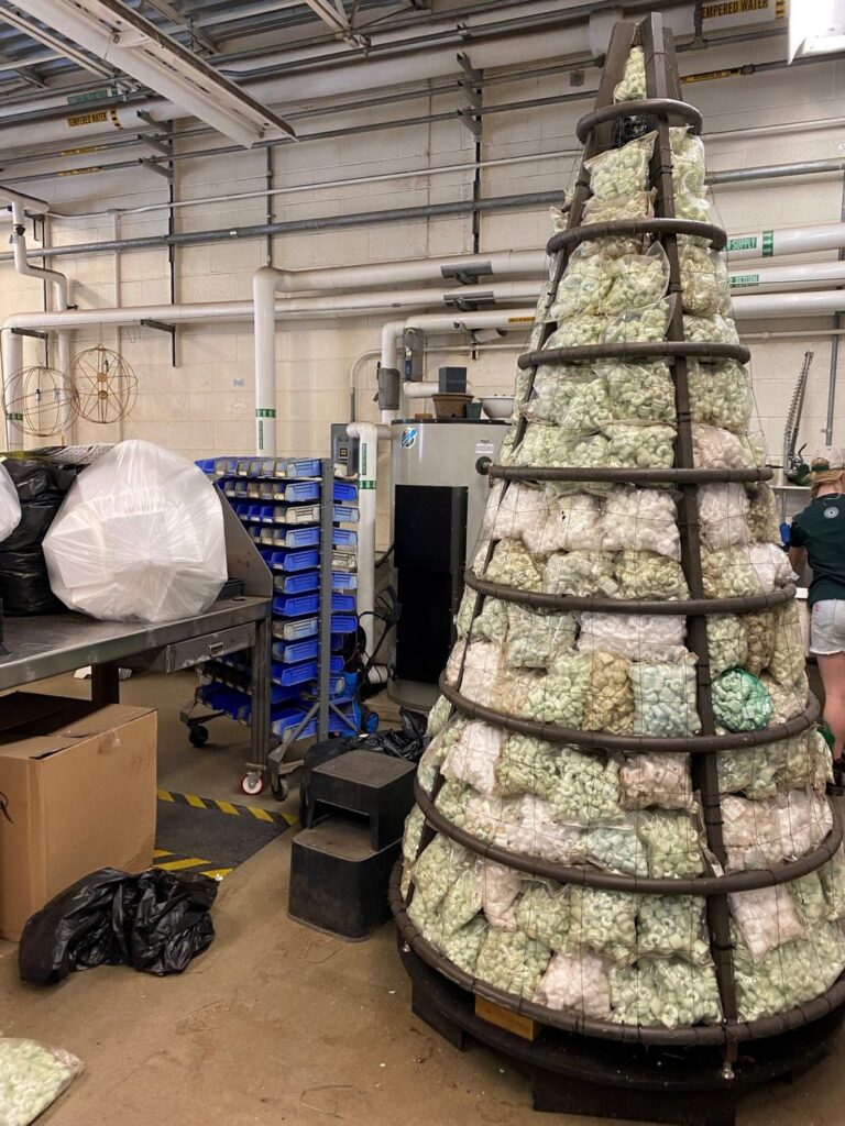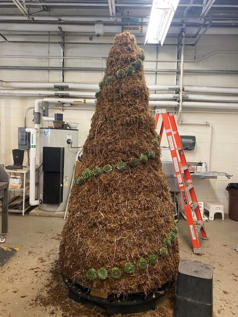 El árbol de Navidad con siemprevivas (Sempervivum) de Longwood Gardens comenzó a montarse a finales de septiembre, y los trabajos continuaron hasta la segunda semana de octubre.