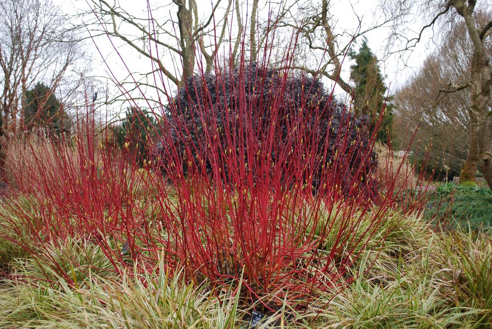 Otra variedades interesantes incluyen Cornus alba ‘Baton Rouge’ que forma un matorral de esbeltos tallos rojos que se vuelven de color carmesí brillante en invierno; y especies como Cornus sanguinea ‘Midwinter Fire’, con espectaculares tallos de invierno en color amarillo-naranja-rojo. Ver más en: Cornejos encendiendo el jardín de invierno.