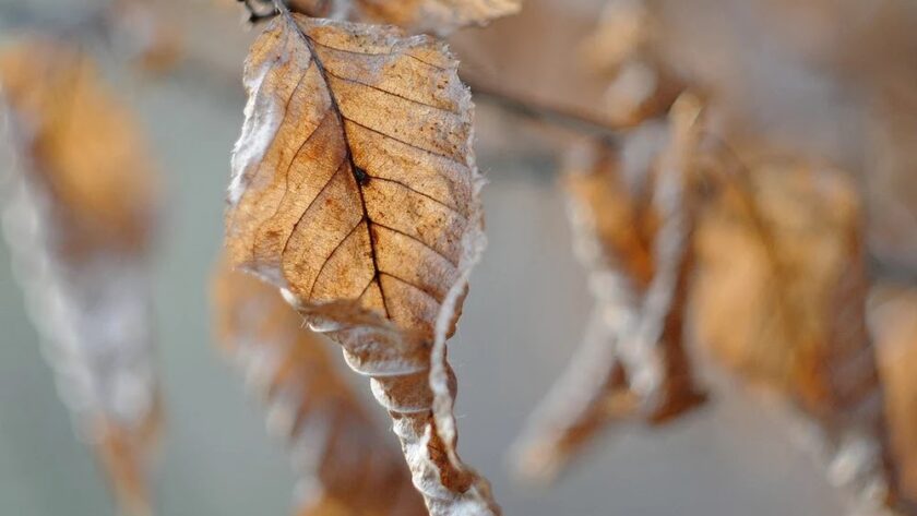 Esta tendencia a la retención tardía de las hojas se denomina marcescencia. Una bella palabra, como lo son las delicadas hojas marcescentes que quedan suspendidas en medio del paisaje invernal, con heladas e, incluso, nieve. Hojas que bailan con el viento en los días más fríos del año y cuya belleza han sabido capturar algunos brillantes fotógrafos. Primeros planos de hojas suspendidas de forma dramática de la rama; árboles envueltos en tonos beige o bosques marcescentes que llenan de color el paisaje invernal. Poco que envidiar al otoño.