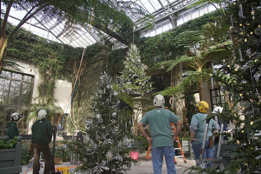 El resultado definitivo parece que ha salido según lo previsto. Los 17 abetos llegaron a Longwood el 5 de noviembre. Los árboles se iban decorando por grupos, para izarlos después. En primer lugar se elevaron cuatro árboles, que se sujetaron en las vigas. Posteriormente se subió un hexágono con 6 árboles suspendidos del marco y uno del cable del cabrestante. Por último, dos triángulos con 3 árboles cada uno completaron el montaje de esos 17 árboles, que quedaron separados de forma equilibrada, decorados e iluminados.
