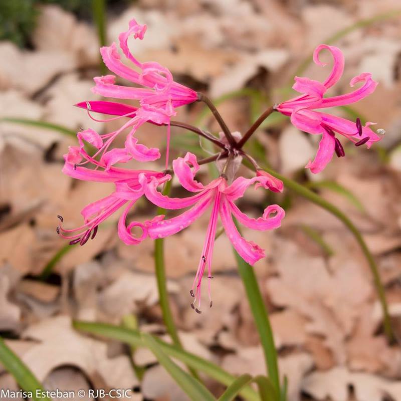No faltan guiños a la fauna del jardín con una preciosa foto que nos muestra «El reposo de la garza real (Ardea cinerea)», como tampoco se olvidan de mostrar «pinceladas de color rosa entre la hojarasca» gracias a las flores de Nerine bowdenii.